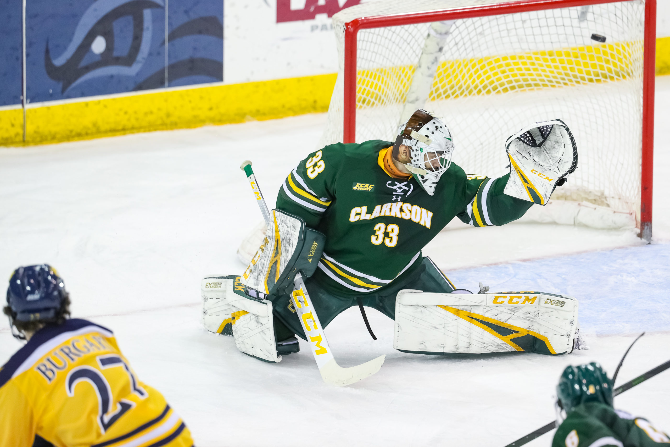 Clarkson jumped to an early lead on Grant Cooper’s tally at 3:43 of the first and doubled that margin when Anthony Calling’s scored with 1:41 left in the frame.